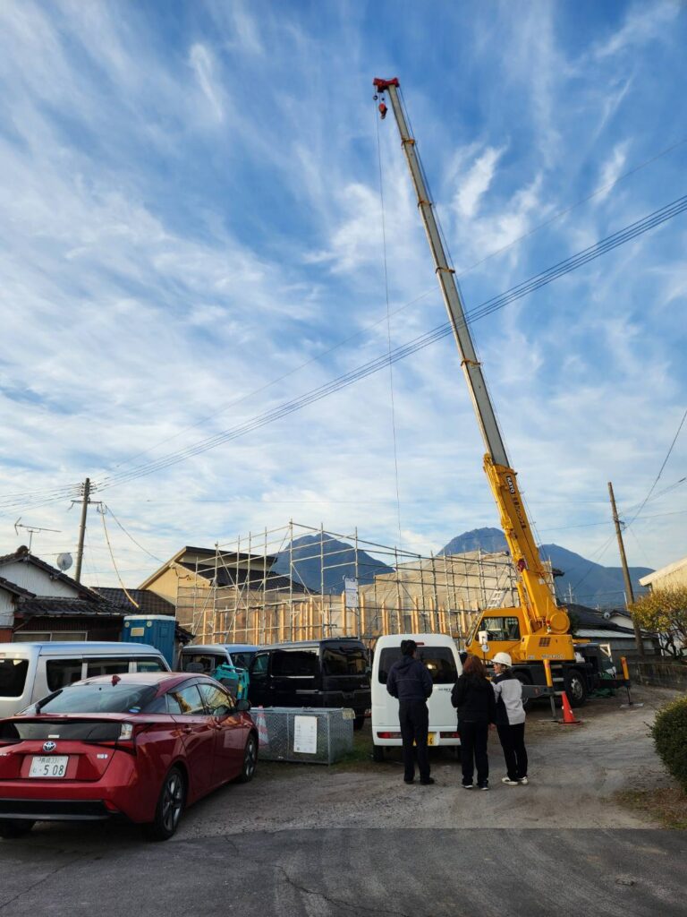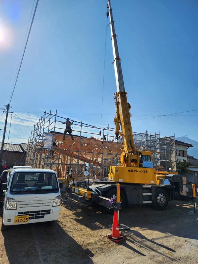 当日は天候にも恵まれ、クレーンを使用しながら柱や梁を一本一本丁寧に組み上げていきました。